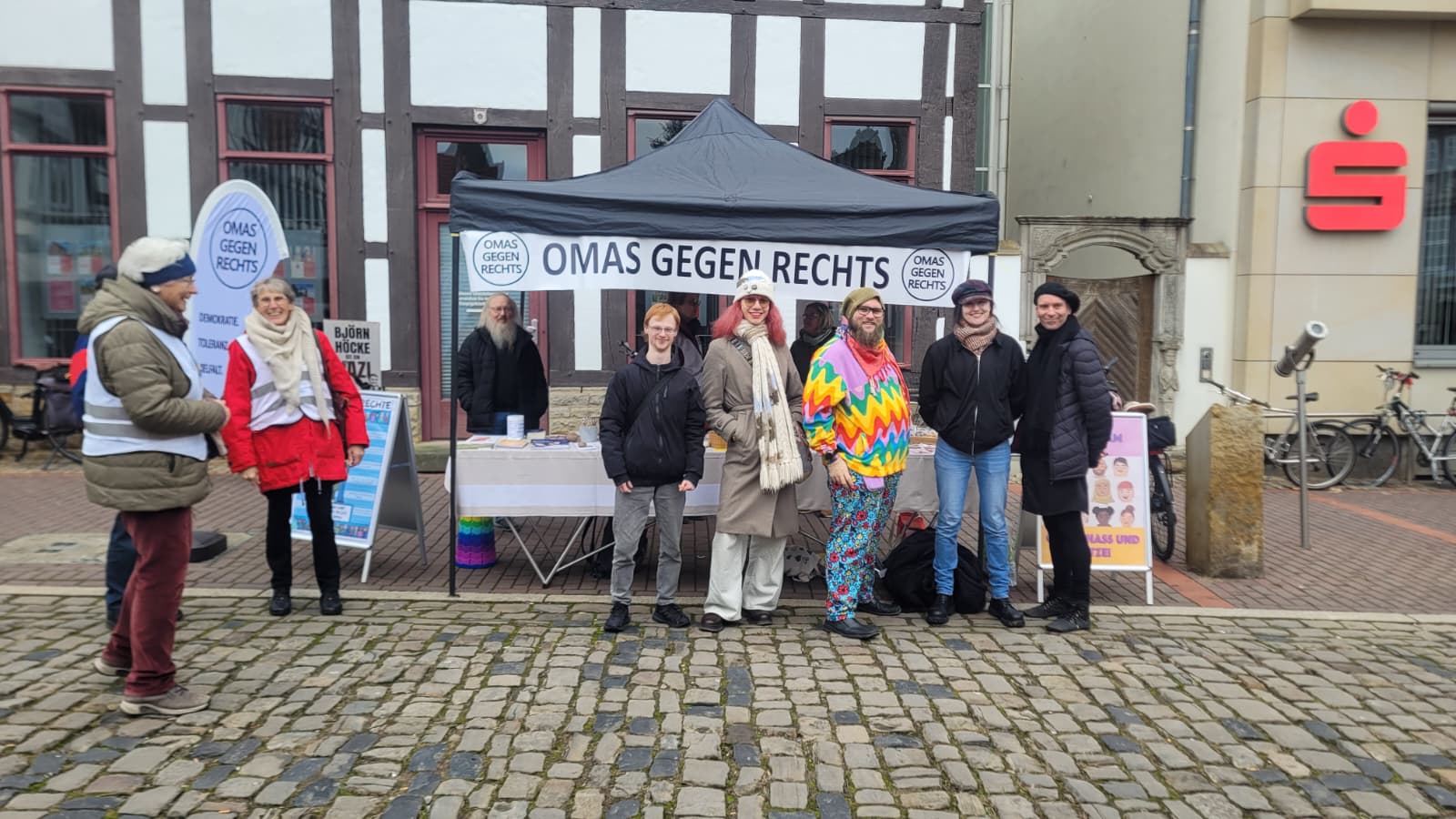 Am 29.11.2025 unterstützen wir die Omas Gegen Rechts Schaumburg bei ihrem Stand, An diesem Wochenende gründete sich die neue AfD-Jugend (Generation Deutschland) und wir setzten zusammen ein Statement für Menschlichkeit gegen die AfD.